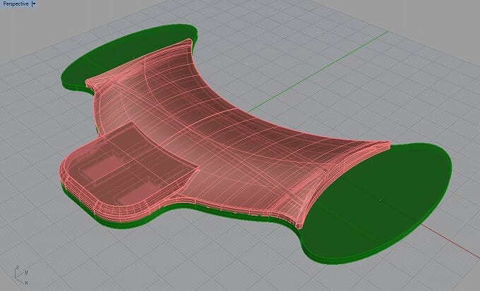 主翼のような上のパーツには横にリブを2本走らせ、反りを抑える形としました。