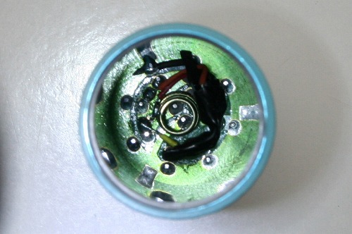基板と電池接点の間にLEDドライバを組み込む改造です。