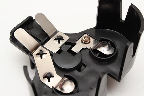 電池に被せるパーツの、電球に繋がる端子をニッパーで短く切りました。