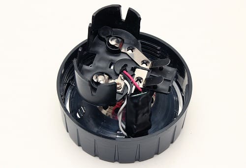 電球が入る円筒部分内側の4つのリブをカッターで削り取ります。
