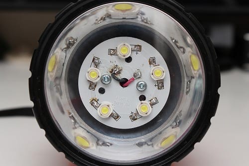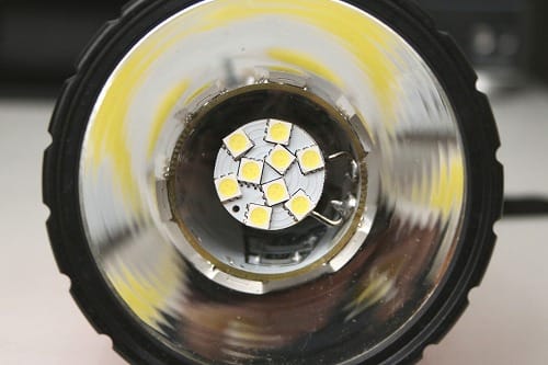 懐中電灯本体は3年ほど前にホームセンターで398円で買ったモノですが、光源を豆電球からLEDに交換しています。そのLEDがパワーアップして今回が3作目となります。