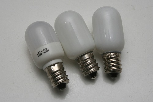 左から100均0.5W、エルパ0.5W、5Wナツメ球。大きさはほぼ同じです。