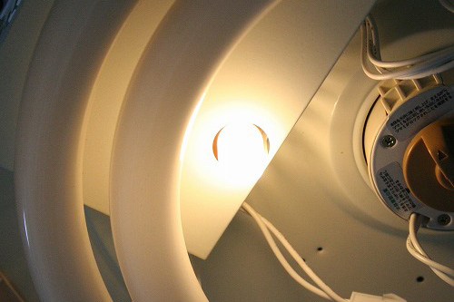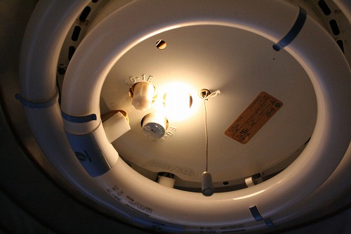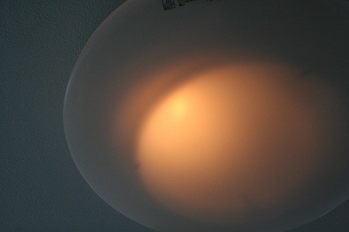 早速シーリングライトに取り付けて光具合を見てみます。(写真はss:1/60、f:7.1、iso:1600に固定)