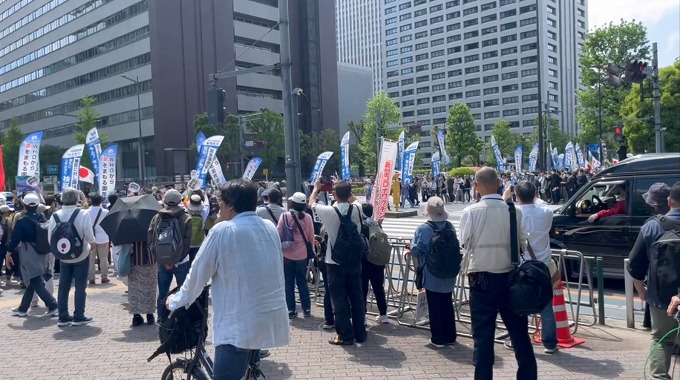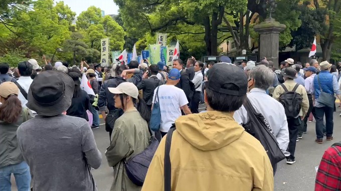 昭和の日、反天連のジジイ達が日比谷公園に集まるということで、街宣右翼のカス共がカウンターとして集結していました。我々に対しても悪態ついてたよ。頭の悪そうなチンピラ。