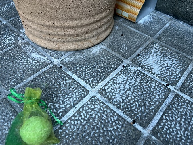 不思議なのは、アイビー(ヘデラ)の鉢の周りに落ちていることです。掃除しても数時間後にはまた2-3粒落ちています。ネズミ忌避剤の効果は無い感じ。