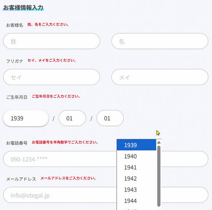 - 誕生日が1939年以降しか選べない。