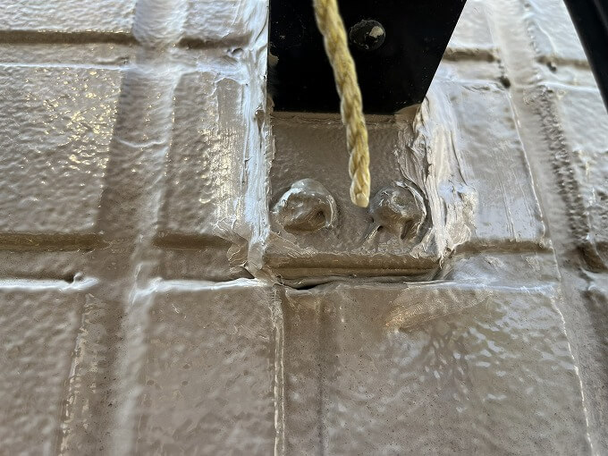 先日、陸屋根に登ってソーラーパネルを取り付けている時に、物干し竿受けの固定ボルトが浮いているのを発見してしまいました。