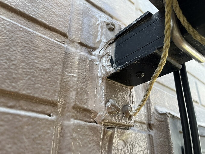 一応これで防水対策は大丈夫でしょう。それよりもウェスで拭いた所はチョーキングが取れて色が濃くなっているのが気になります。そのうち外壁の大掃除をしようと思っています。