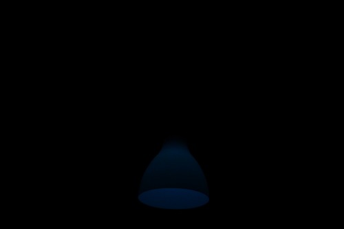 スイッチを切った後の残光。結局、ペンダントランプもこの電球に替えました。