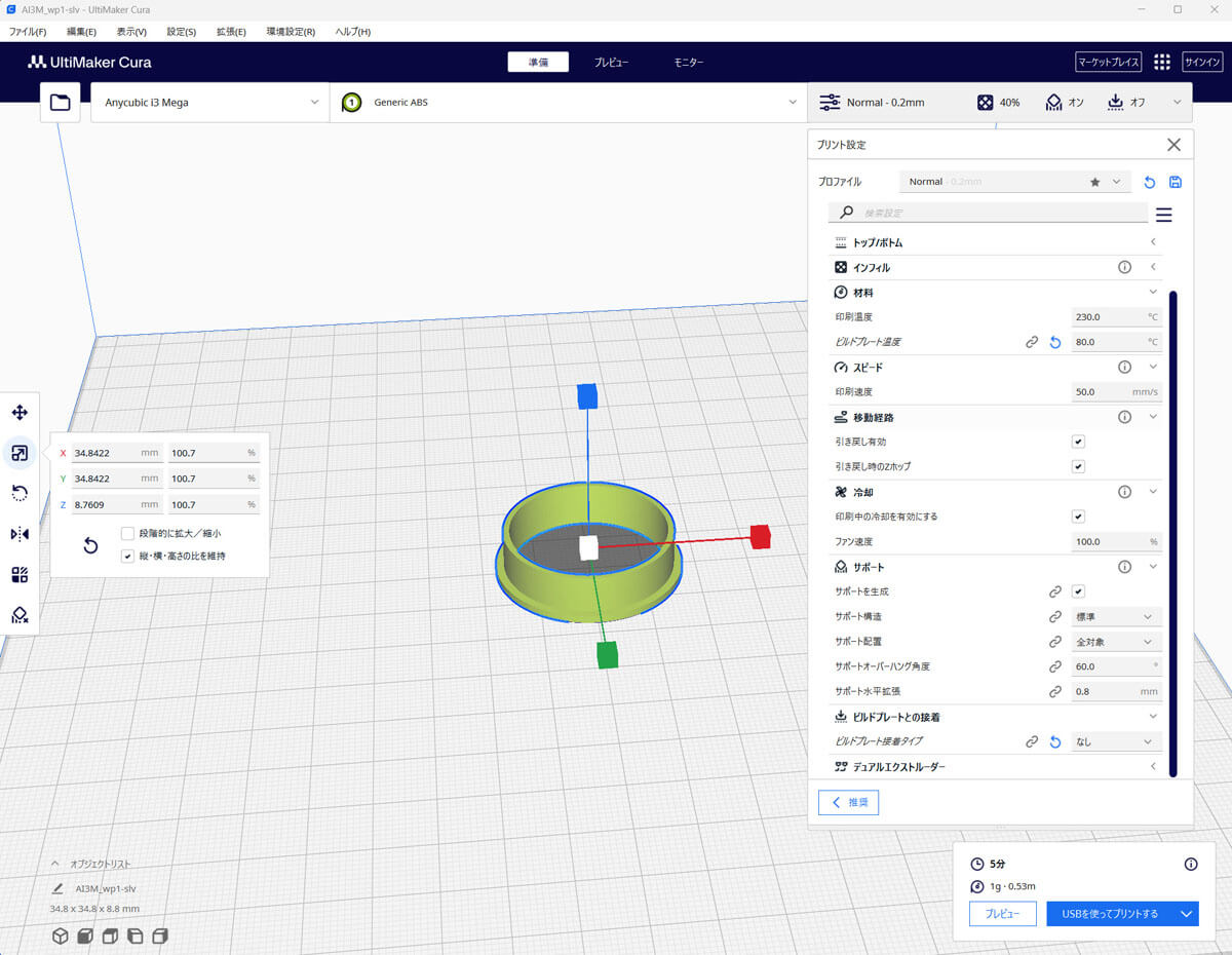 これまで商品に添付されていたCURA15.04.6を使ってきたのですが、これを機に最新5.10版に変えることにしました。