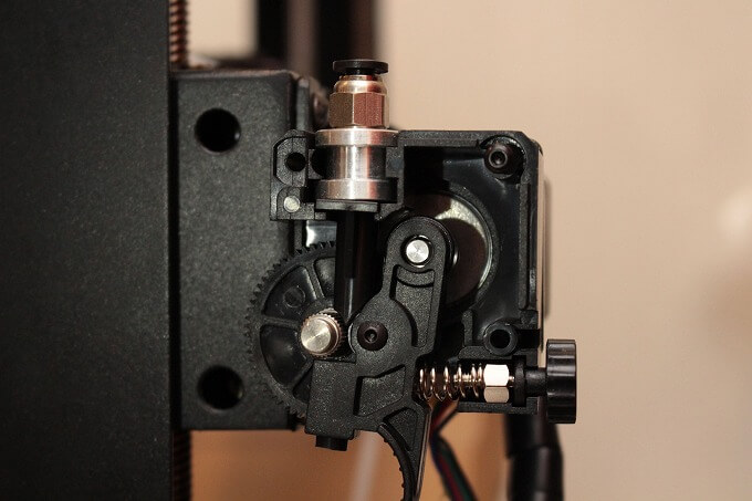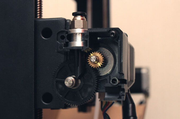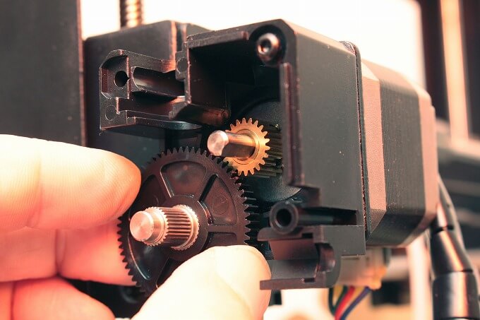 ギア、ボーデンチューブ差し込み口、フィラメント導入パイプをはめ込み