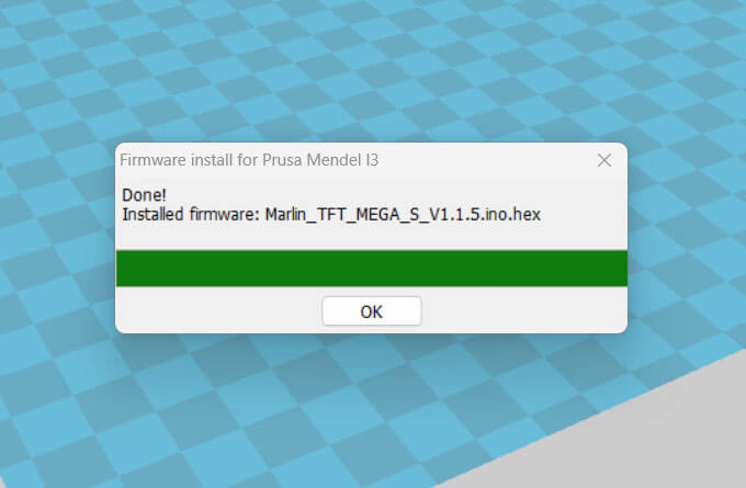 CuraのメニューにInstall custom firmwareがあるので、これを使ってインストール。