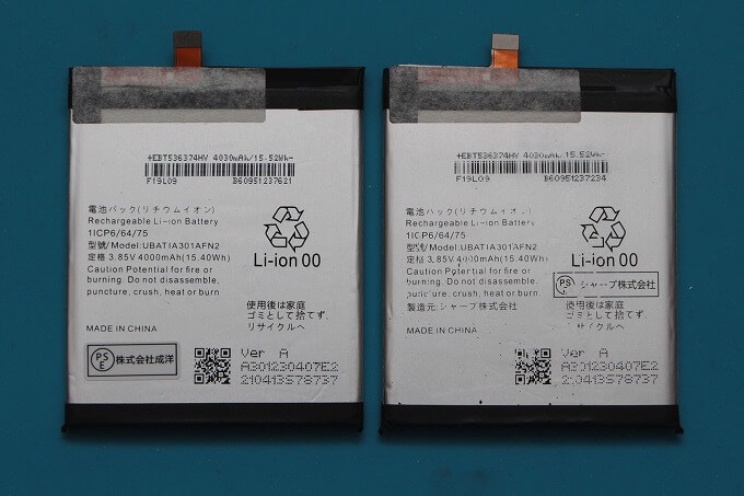 左:1ヶ月しか使っていない新同バッテリー 右:新たに買った新品バッテリー