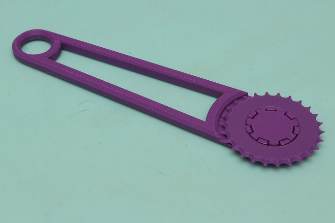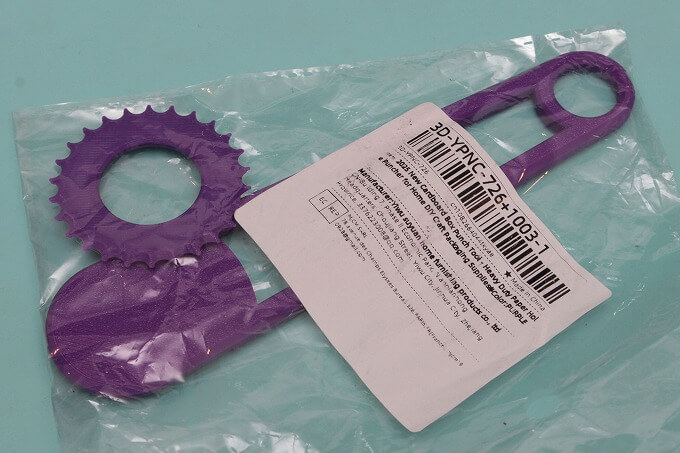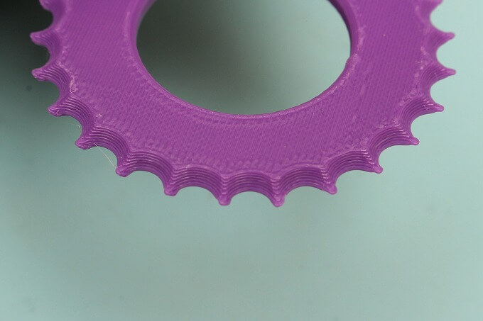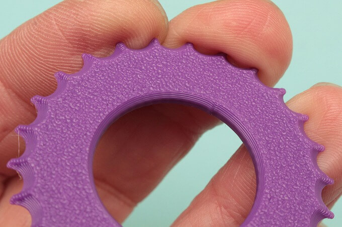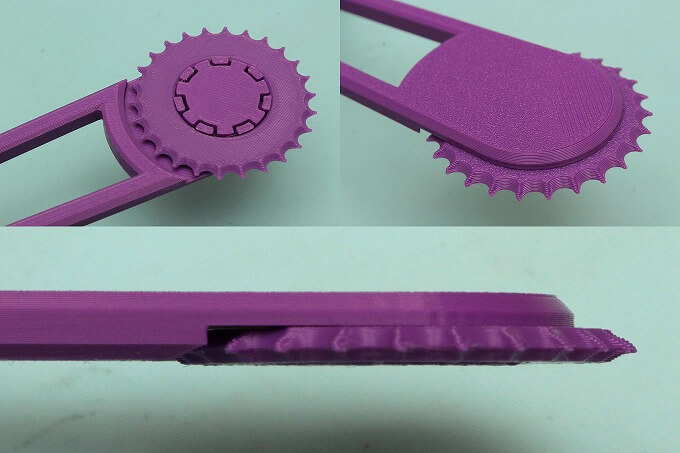 表面に見える縞模様は3Dプリンターで製造されたことを示しています。軸受部分の7つの爪は嵌め殺しのベンドになっていて、ここにギザギザローラーを嵌めればイイみたい。