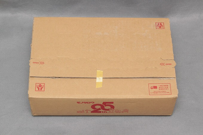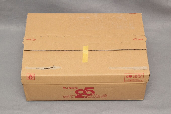 たまたま取ってあったモノタロウの段ボール箱。<<<OPENを引かず、再利用しています。