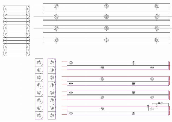 上下のT型アングルを繋ぐ連結金具はアルミの板材を加工後、M4のタップを切りました。