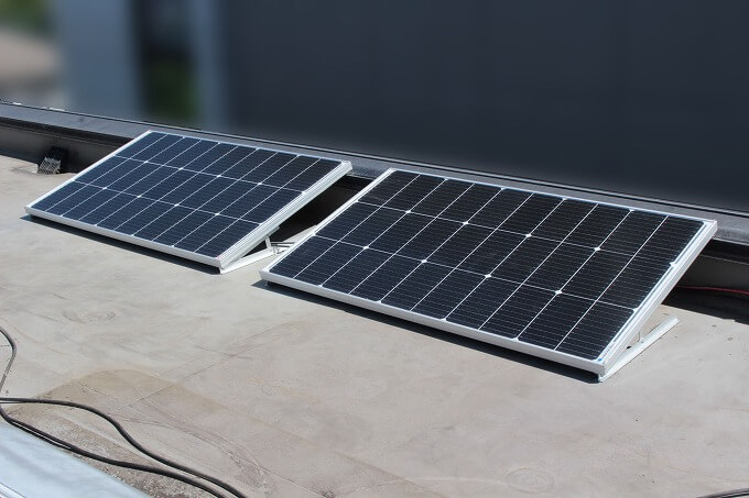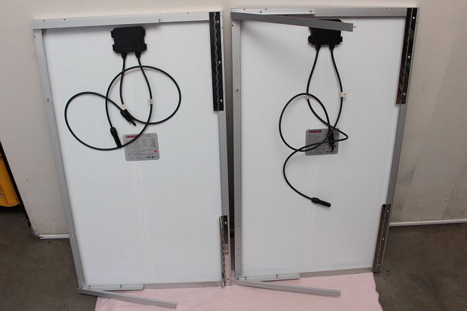 amazonで買ったDOKIOの100Wソーラーパネル2枚を屋根に取り付けました。