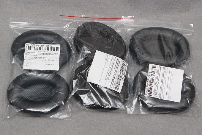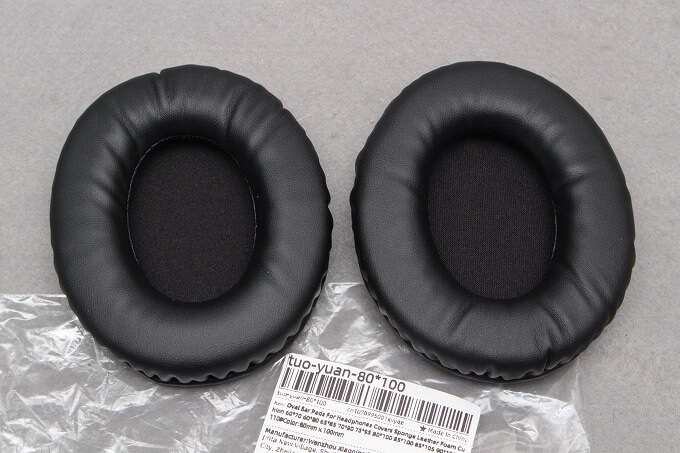 AliExpressでイヤーパッドを探すと500円ほどの価格で大量に見つかります。選んだのは裏側にトラック楕円の耳が付いている(写真が出ている)物。