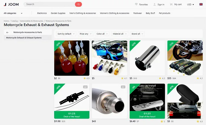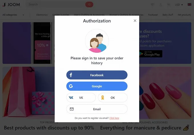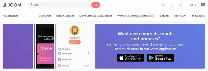 Aliexpressのようなモール形式です。情報が少ないのに何故このサイトを知ったのか?というと、いつも使っているトラッキングサイトにJoomの文字を見つけたからです。