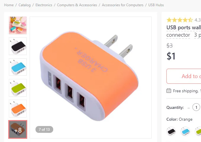 試しに買ったのはUSBチャージャー。これがたったの$1(送料無料)です!