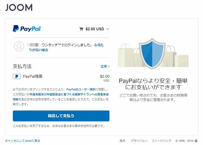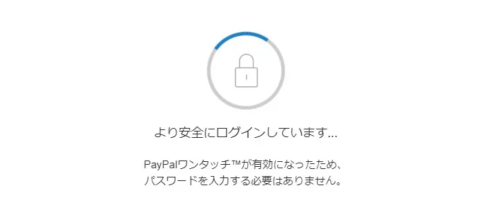 PayPalワンタッチTMの設定が有効になったため、パスワードを入力する必要がありません。