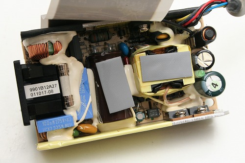 ということで、開けてみます。ゴム脚の下にネジがあるタイプなので分解も簡単。