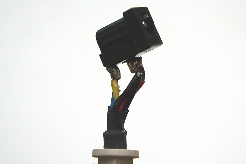 黄・青がプラスで、赤・黒がマイナス。この部分でコードを切断します。
