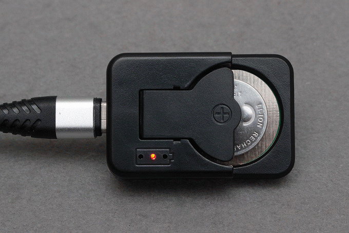 充電中は赤LEDが点き、充電完了で緑に変わります。