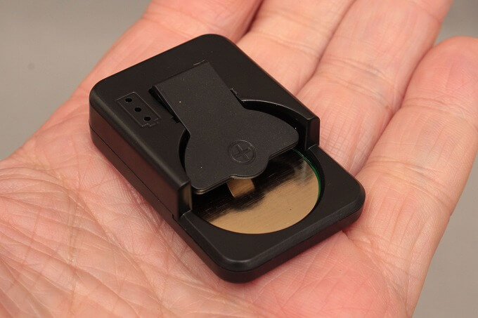 小さいです。+接点部分はバネ式で、電池を置いて挟み込む構造。