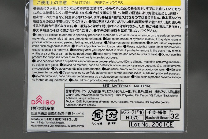 ダイソーで買ってきた「合皮用補修シート」です。
