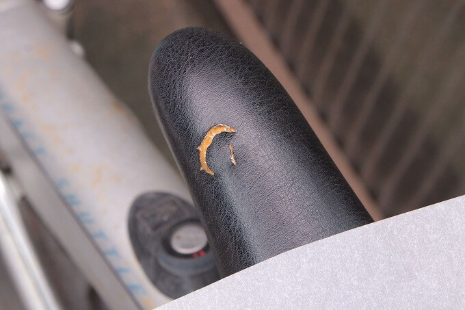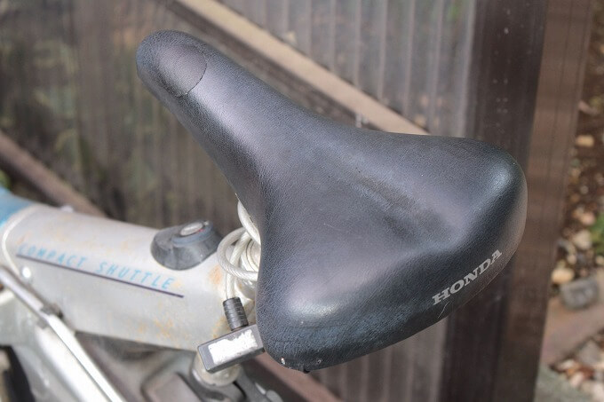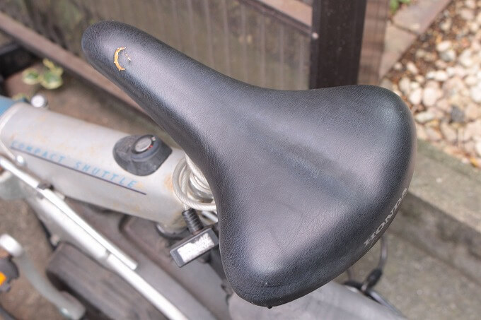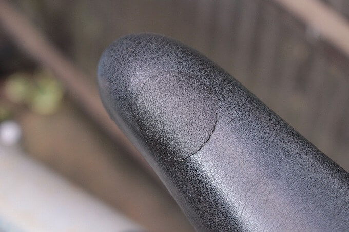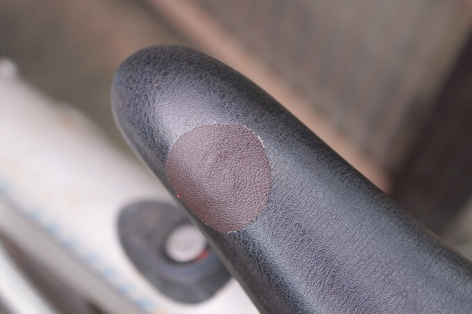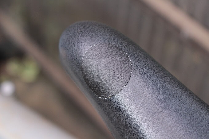 ラクーンコンポのシートが破れていたので、ダイソーで売っている「合皮用補修シート」で補修しました。