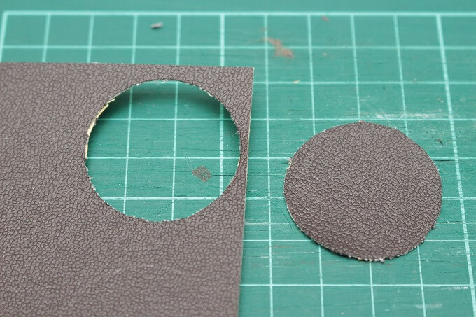 テンプレートを当てて、デザインナイフでΦ33に切りました。