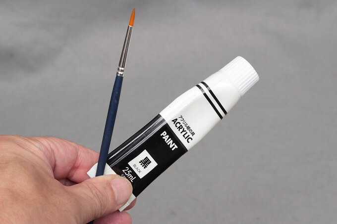 裏地の白い布がちらっと見えるのが気になるので、黒のアクリル絵の具で誤魔化します。