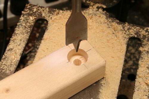 角材を400mmに切断後、ダイソーの20mmのキリで10mmほど座ぐります。