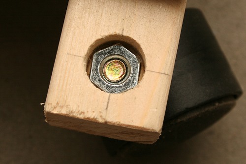 14mmでざぐった後、彫刻刀で六角形に彫って、ナットが回らないようにしました。