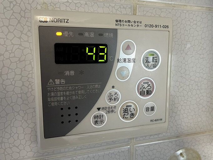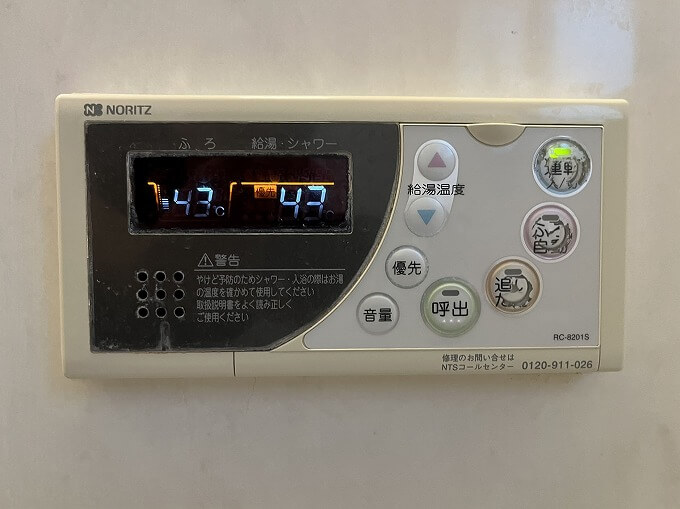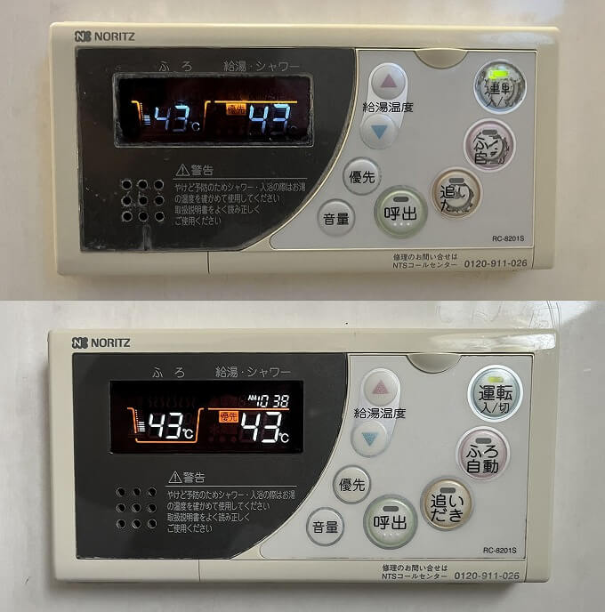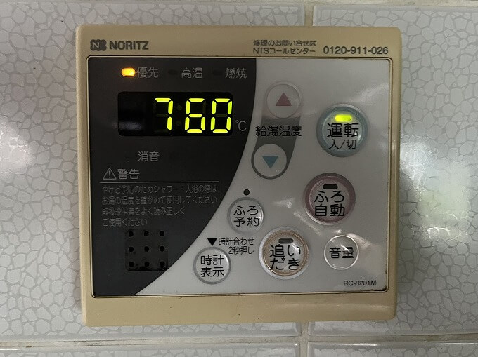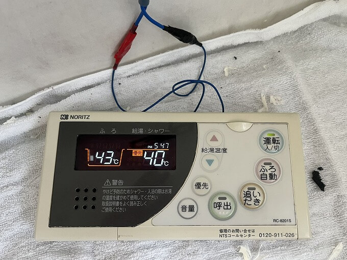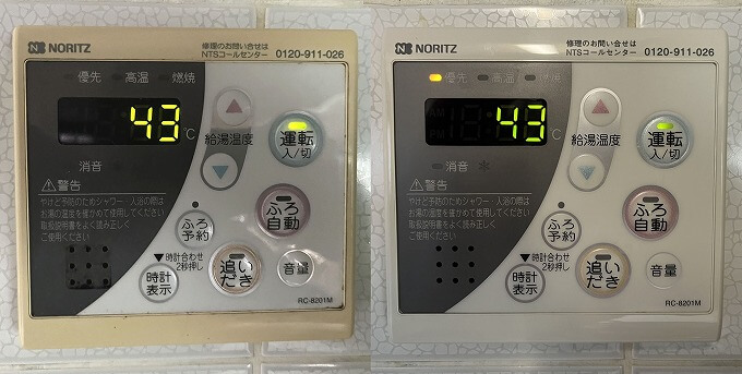 スイッチを入れて操作を確認すると、風呂、台所共に正常に動作しています。