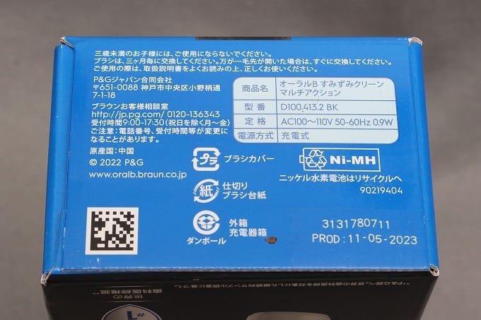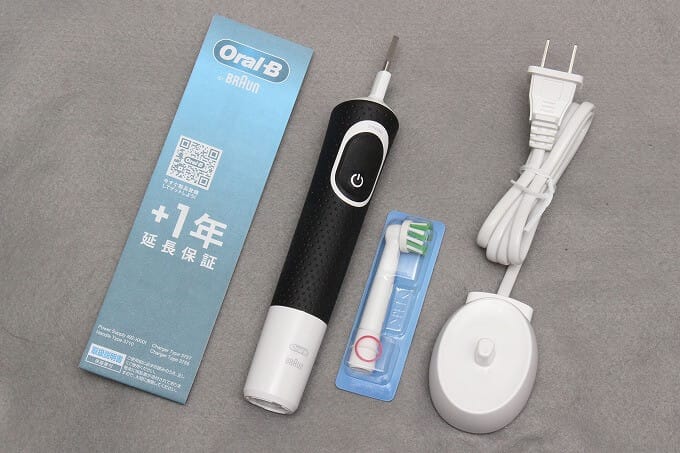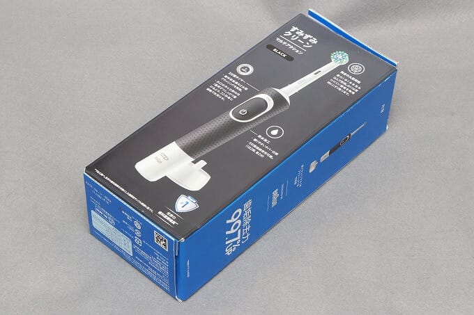 黒いOral-Bです。ブラウンのイメージと差別化するために黒いボディにしたのだろうか?機能的には青いのと全く同じなんだろうと予想してコレを買いました。