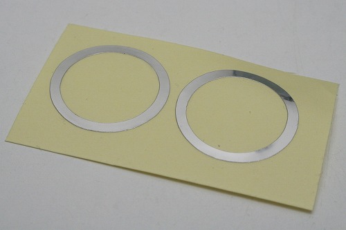 レンズの外枠を筒に押し込んだ後、飾りリングを貼り付けます。