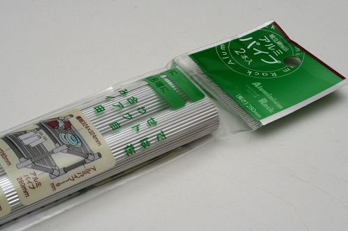 アルミパイプが使えます。先端部はサンディングブロックとして使えるかも?
