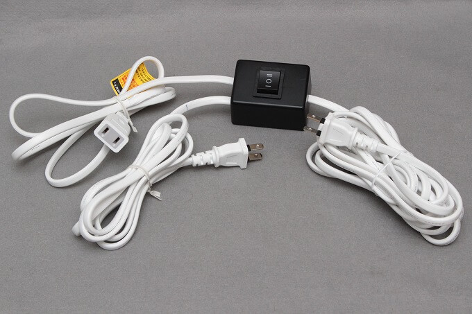 エアコンの電源プラグを壁コンセントから切替スイッチに繋ぎ変え、切替スイッチのプラグを壁コンセントへ挿し込みます。