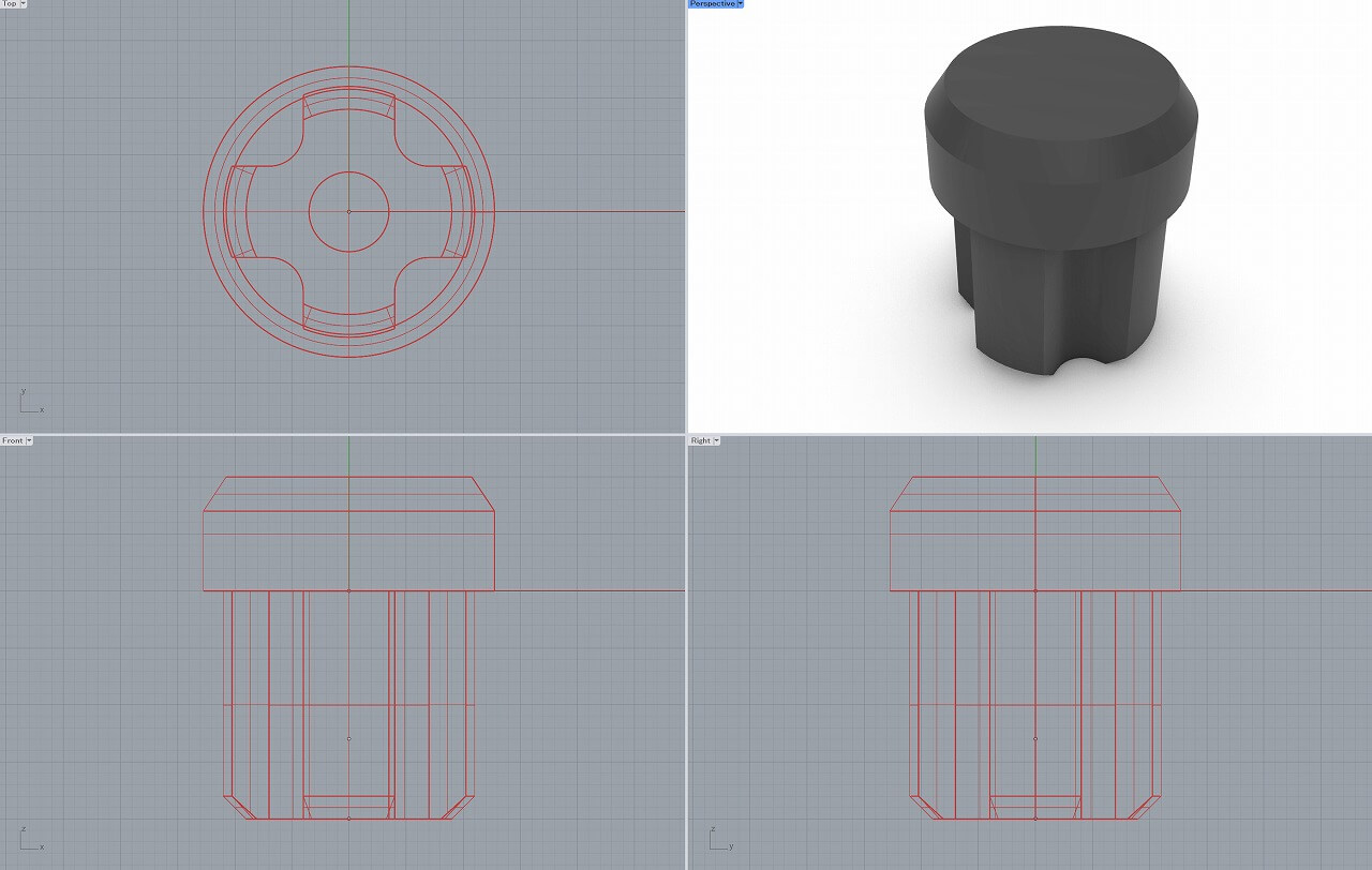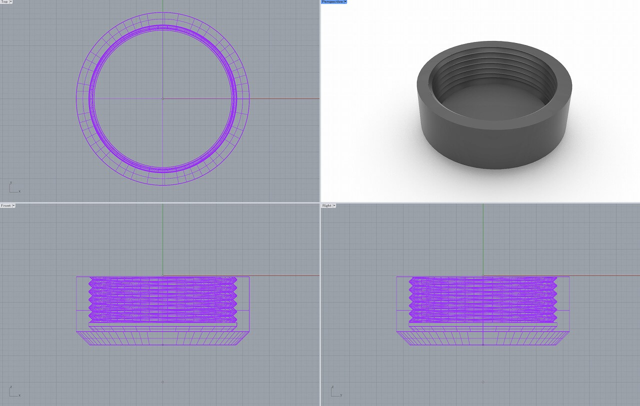 エンドキャップは、ネジの深さ、ピッチを測ってモデリング。