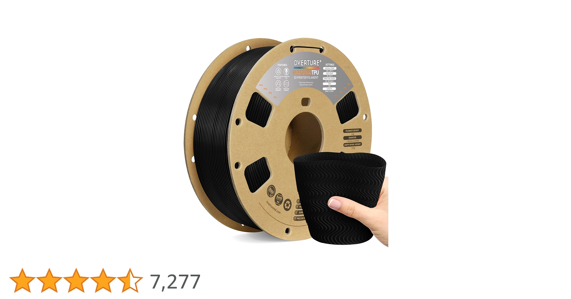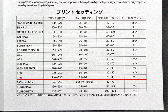 フィラメントはハイスピードTPUというのをamazonで買ってみました。普通のTPUとの違いはよく分かりませんが、評価は高そうです。ただし、95Aという数値なので硬めのエラストマーなんだと思います。