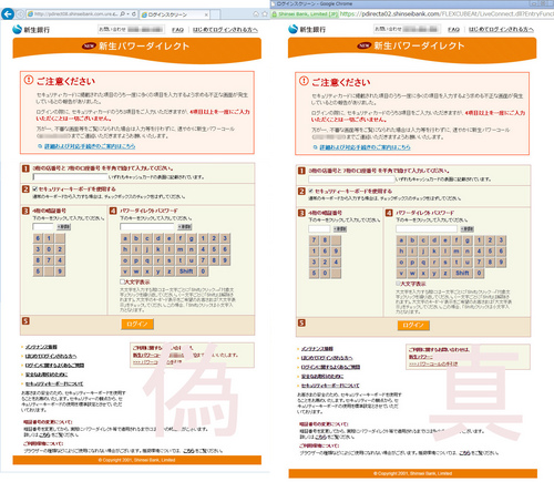 手前が本物で、後が偽物。URLもパッと見、本物っぽく、巧妙に出来てます。