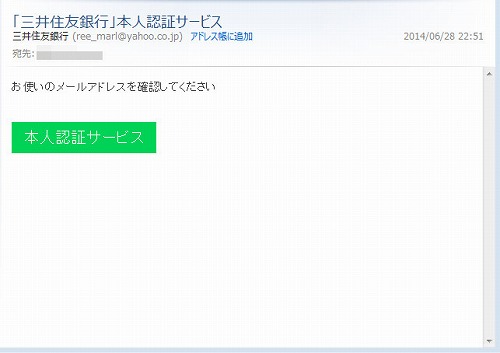 @yahoo.co.jpから来た【偽】三井住友銀行。翌日も別のアドレスから来てます。