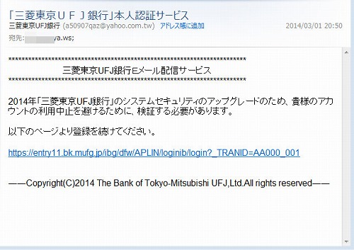では、古い方から見て行きましょう。まずは【偽】三菱東京UFJ銀行から。