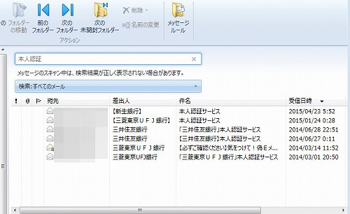 1年ぐらい前から来だした釣りメール。(下から2番目は正規のメール)