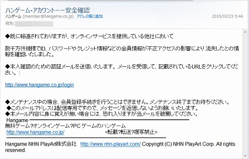 リンクされているドメインは http://hangame.co.jp.se.d×edw.c●m/でした。