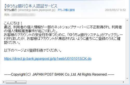 【偽】ゆうちょ銀行からも来ました。一応追記しておきます。(’15.5.18)