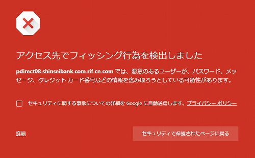 フィッシングが確認されて、注意喚起されています。(ブラウザがChromeの場合)