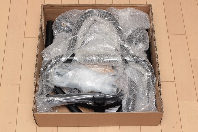 こちらは後輪用のスタンド。この状態から各パーツをボルトで締めて組み立てます。